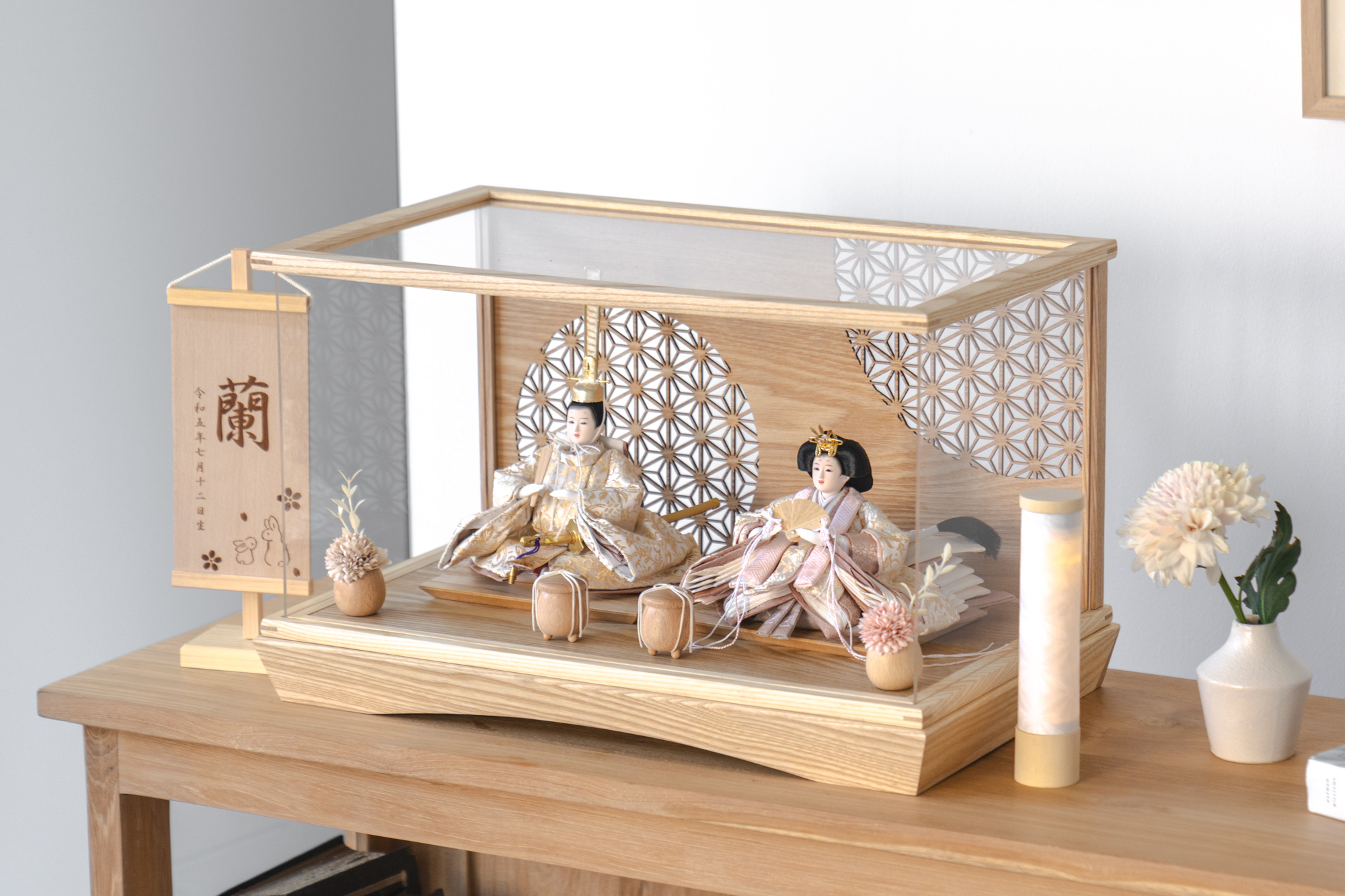 木都のケース飾りは、本物の素材や質感を感じながら親子で一緒に手に取って飾る体験をしてほしいから、あえて飾る手間を残しています。