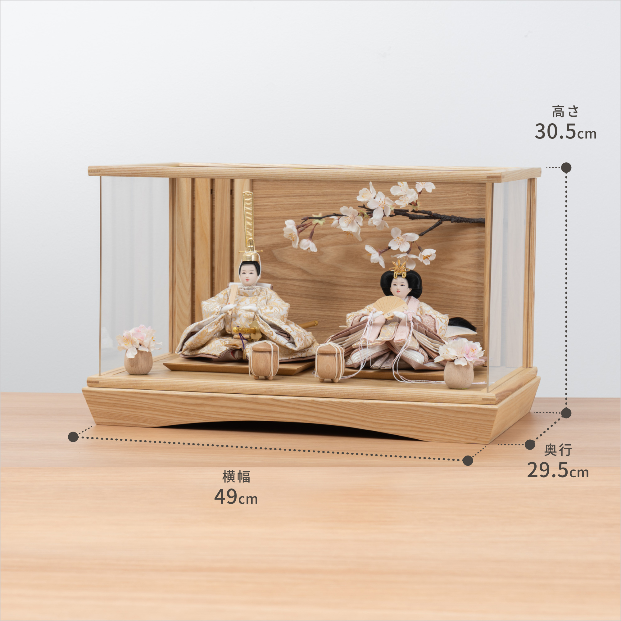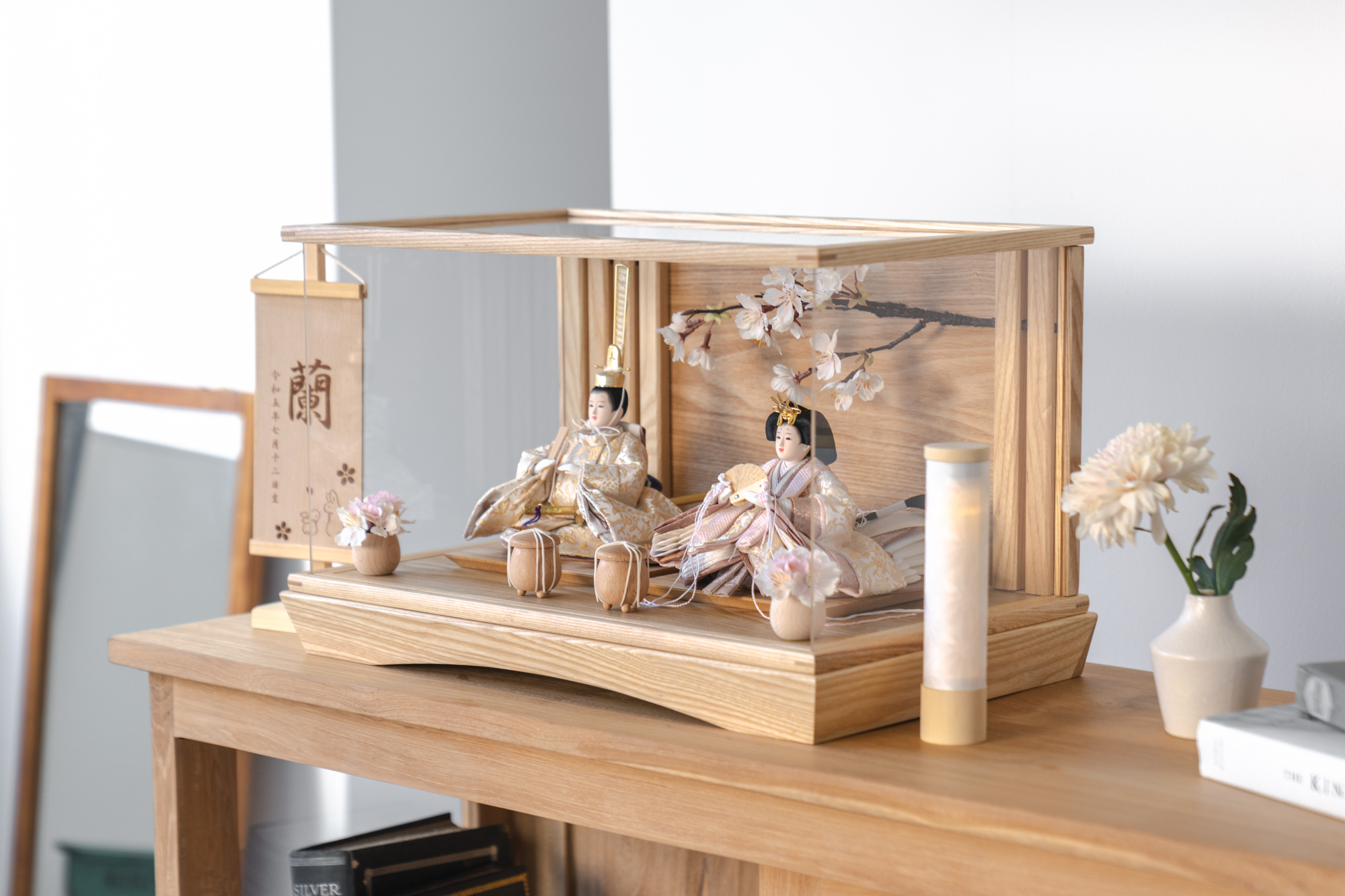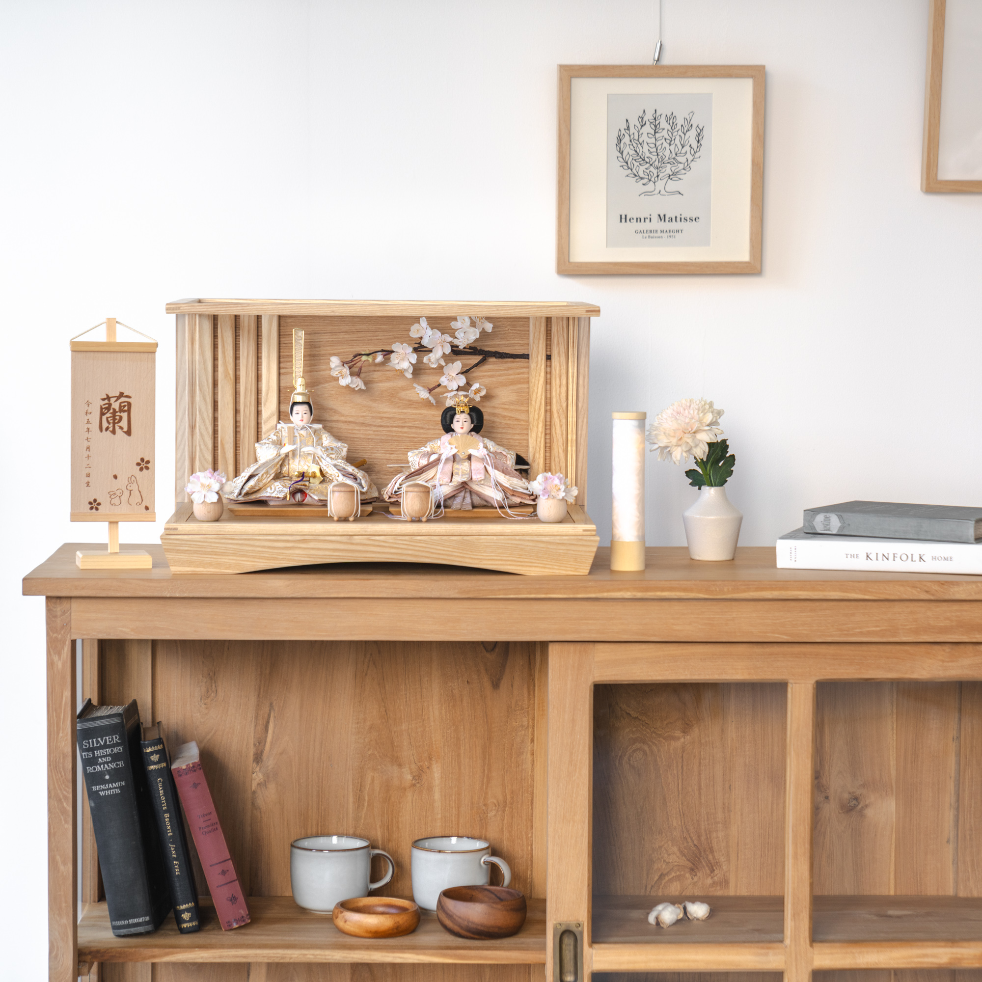 伝統工芸の技術、裏側や後ろ側、内部の見えない箇所や素材にまでこだわり抜いたひな人形。道具も木のぬくもりを感じて頂くために無垢材を使用しております。