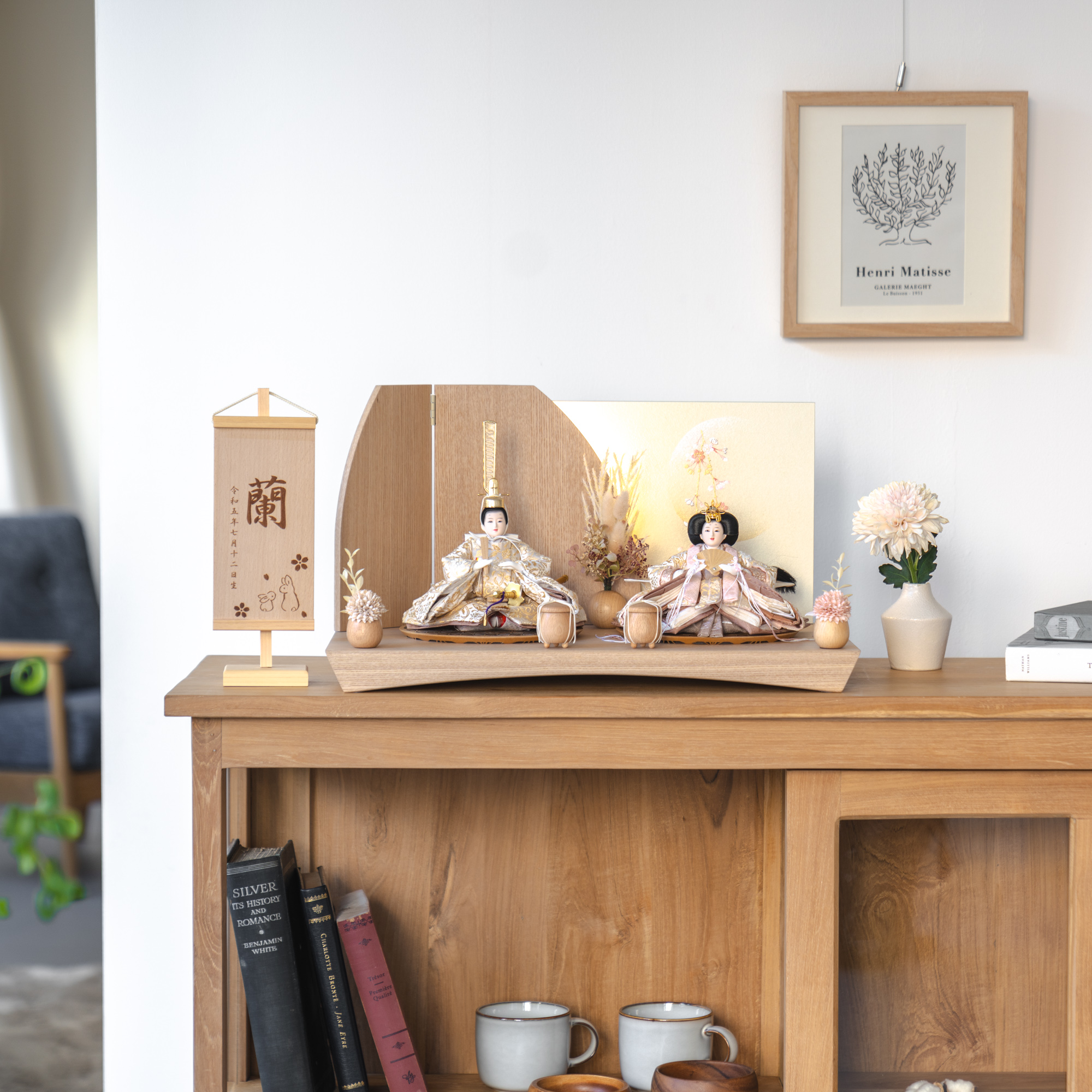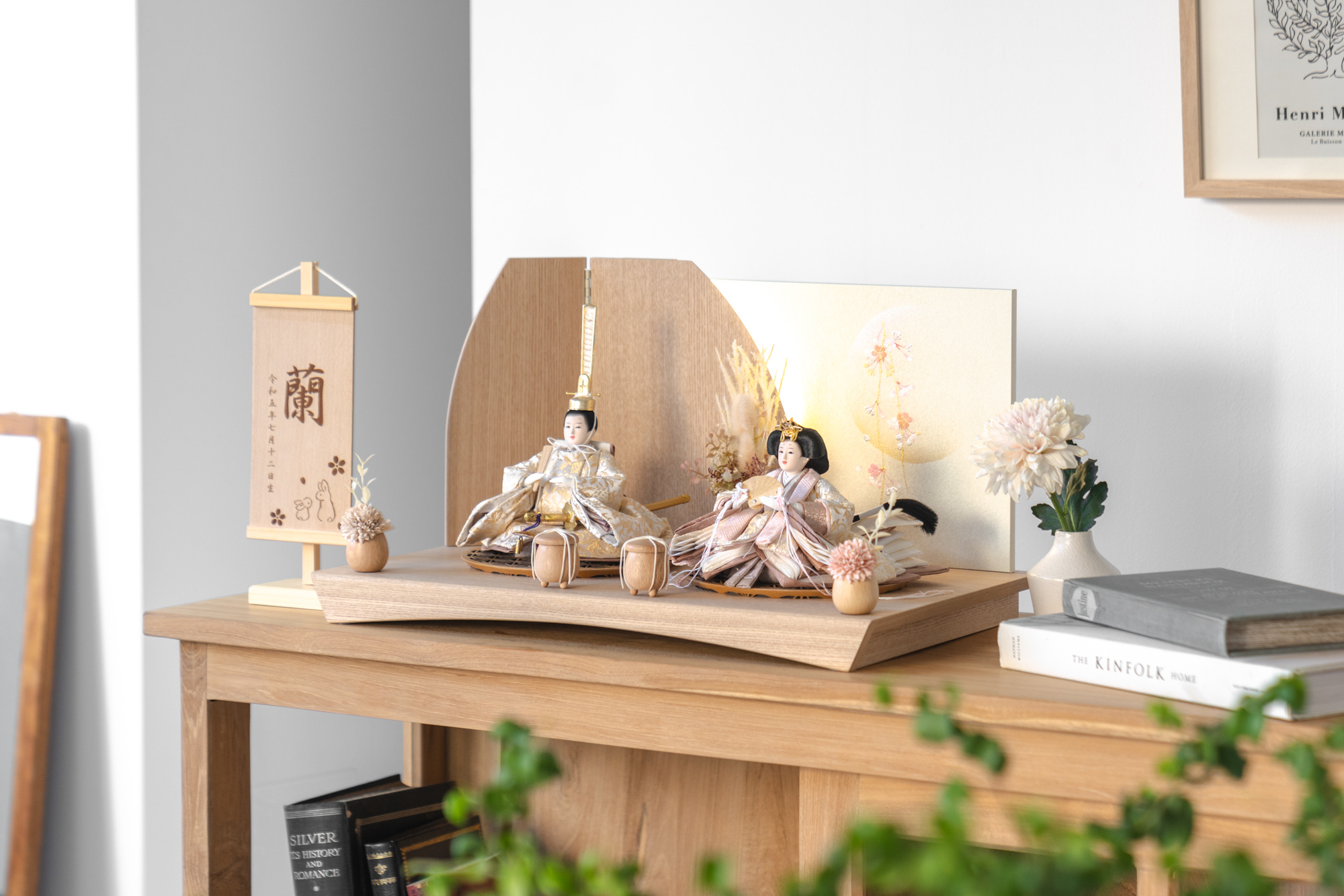 天然木の風合いを生かした木都の羽子板はひな人形と一緒に飾るのにぴったり。