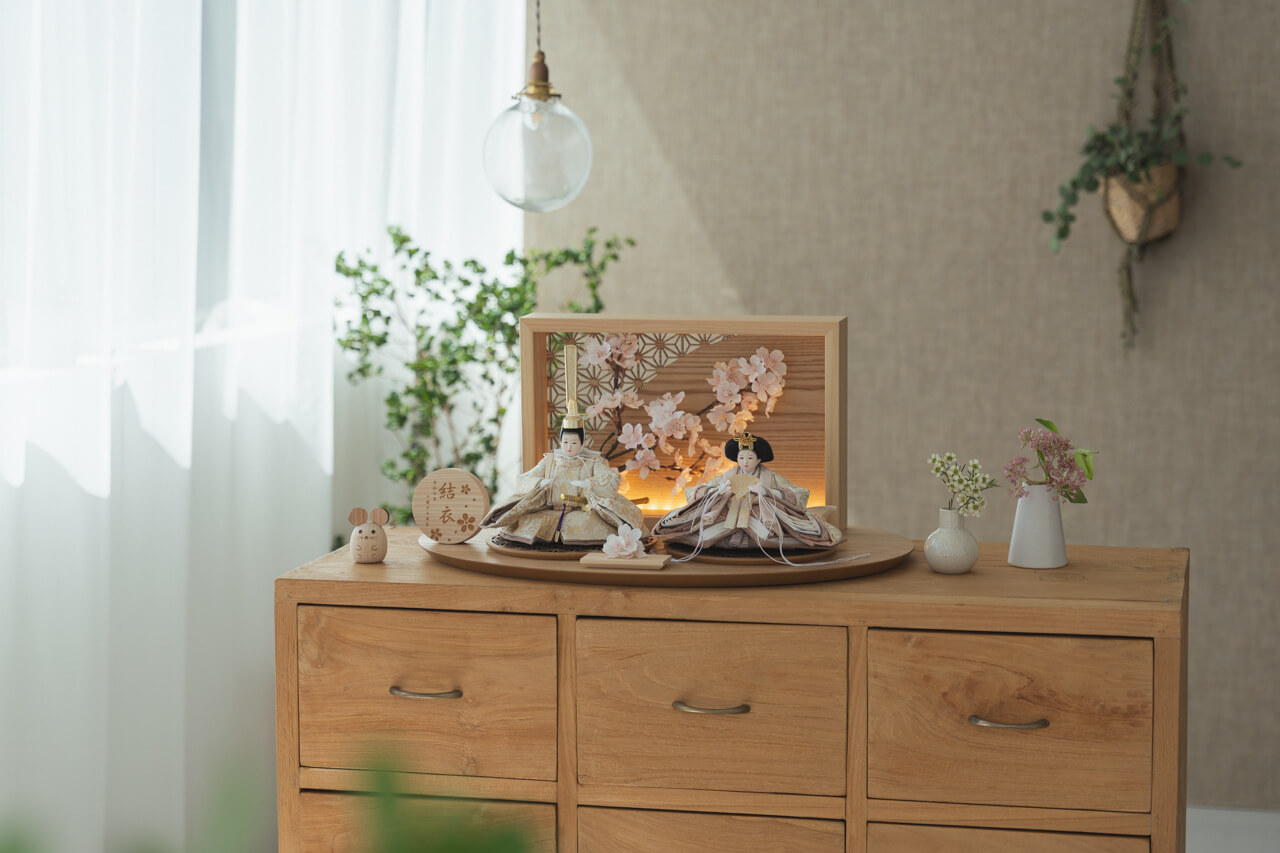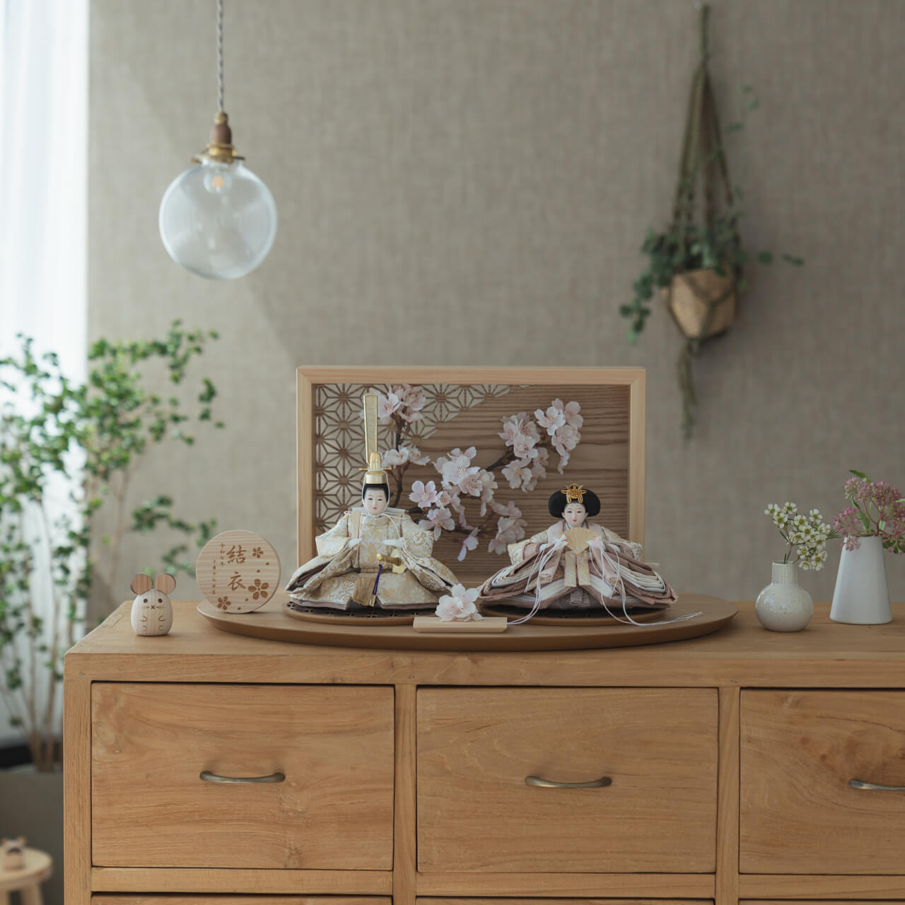 天然木の風合いを生かした木都の羽子板はひな人形と一緒に飾るのにぴったり。