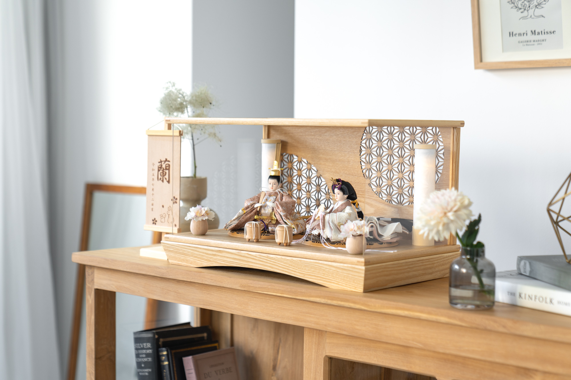 天然木の風合いを生かした木都の羽子板はひな人形と一緒に飾るのにぴったり。