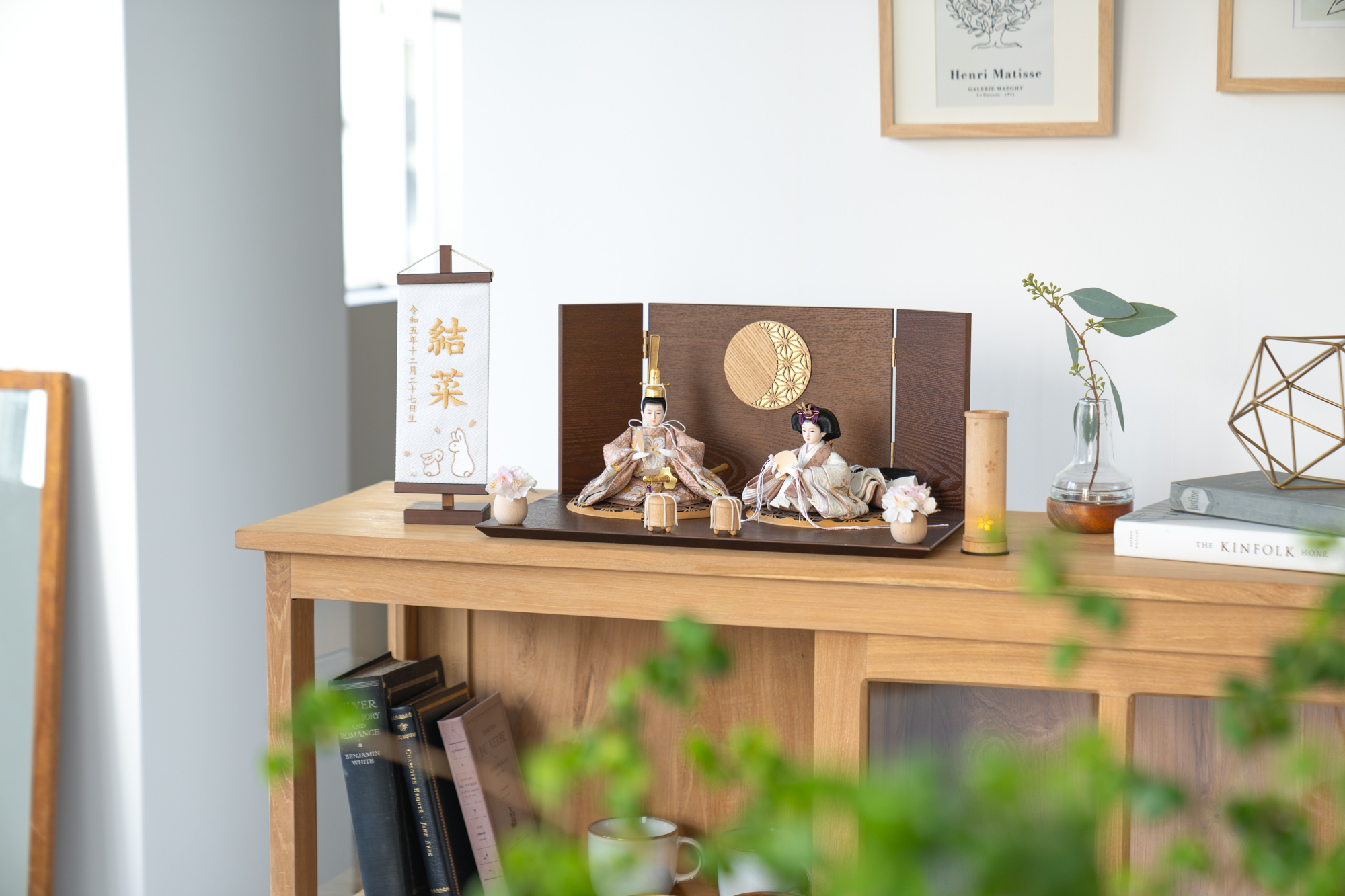 天然木の風合いを生かした木都の羽子板はひな人形と一緒に飾るのにぴったり。