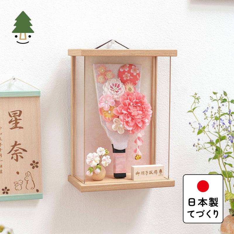 天然木の風合いを生かした木都の羽子板はひな人形と一緒に飾るのにぴったり。