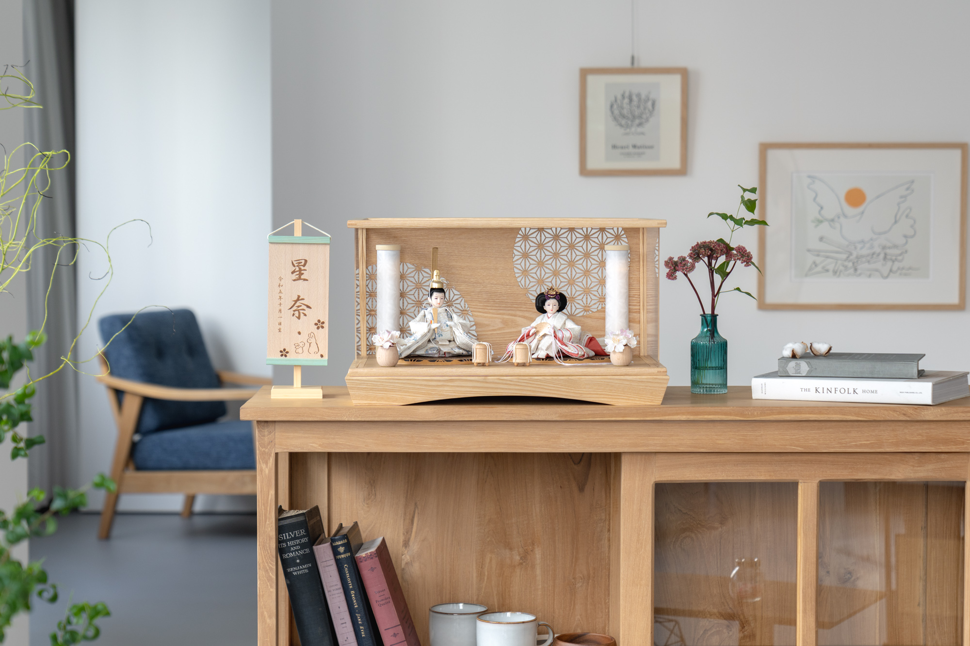 天然木の風合いを生かした木都の羽子板はひな人形と一緒に飾るのにぴったり。