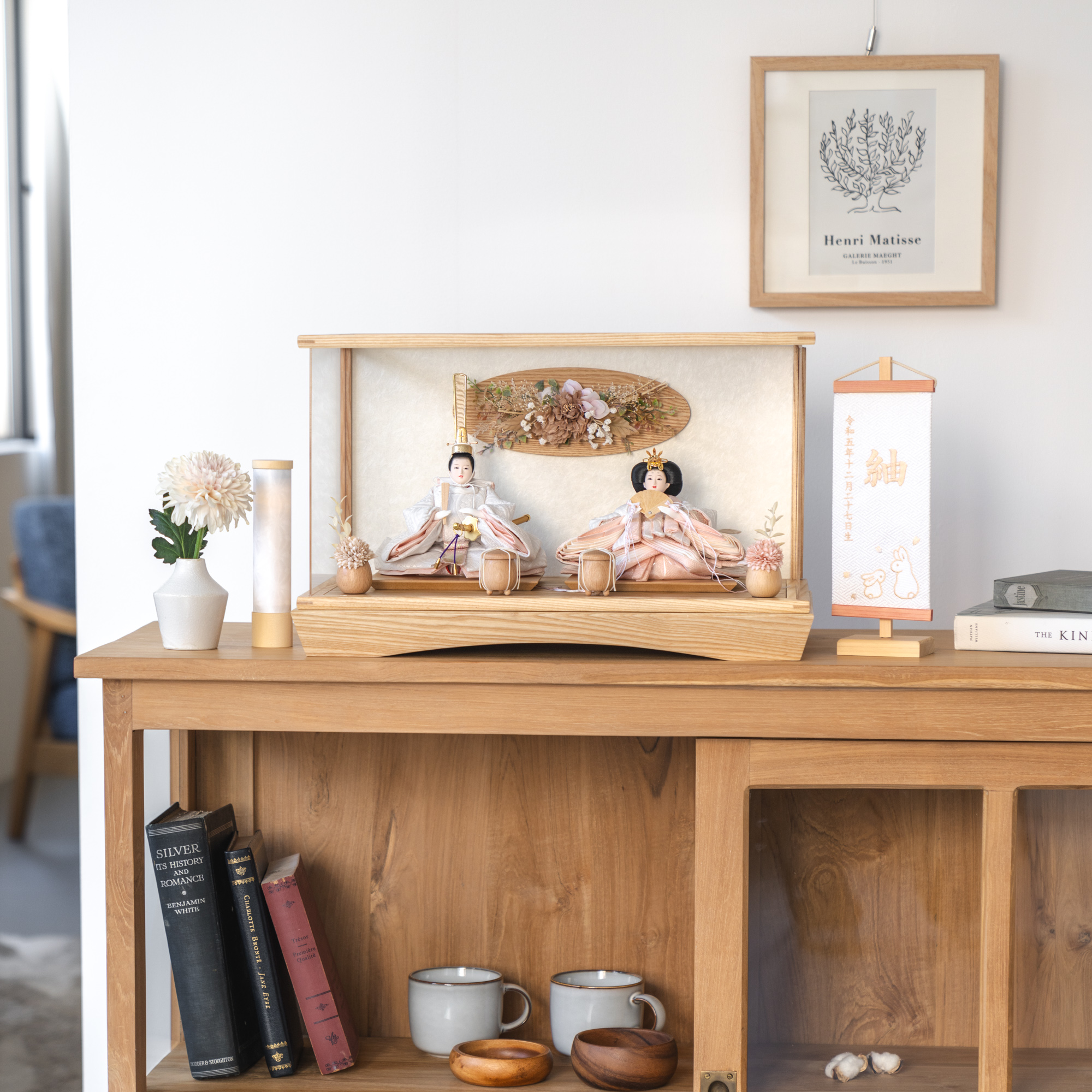 あえて飾る手間を残し、お子様とご一緒に手にとっていただき本物の素材、質感を感じてほしい「ことのひな人形」です。