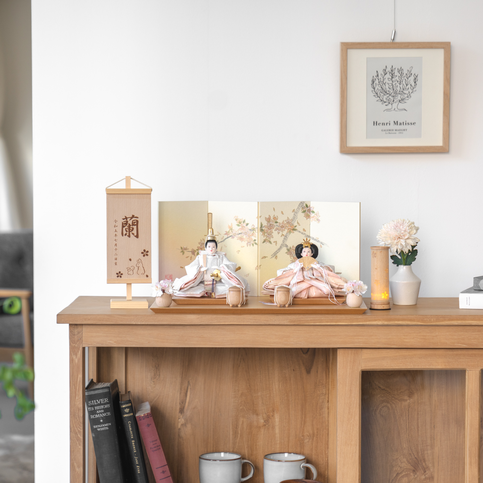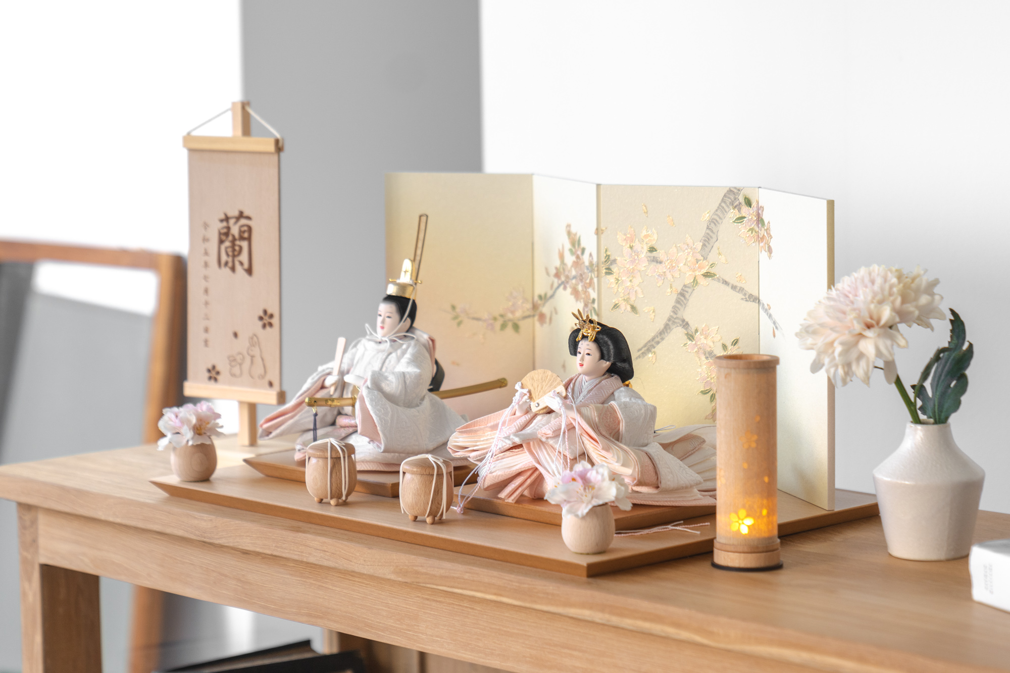 天然木の風合いを生かした木都の羽子板はひな人形と一緒に飾るのにぴったり。