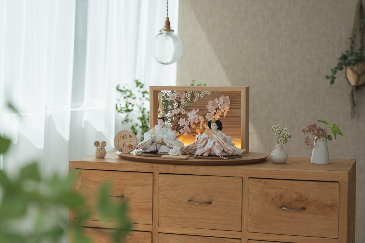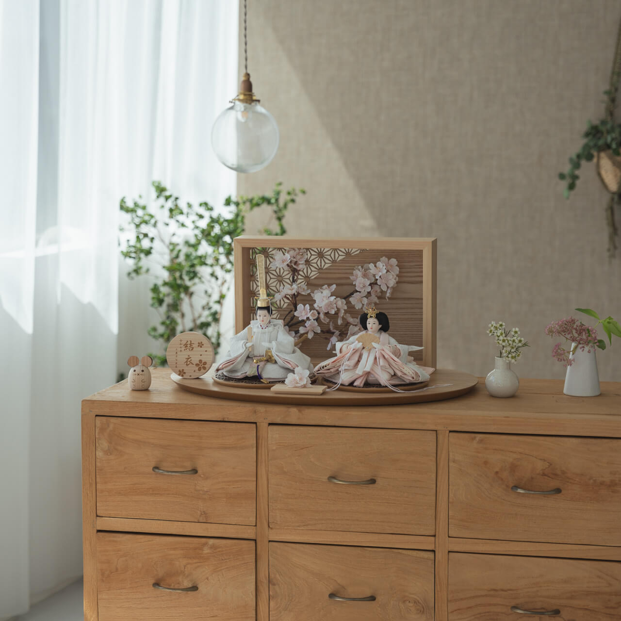 天然木の風合いを生かした木都の羽子板はひな人形と一緒に飾るのにぴったり。