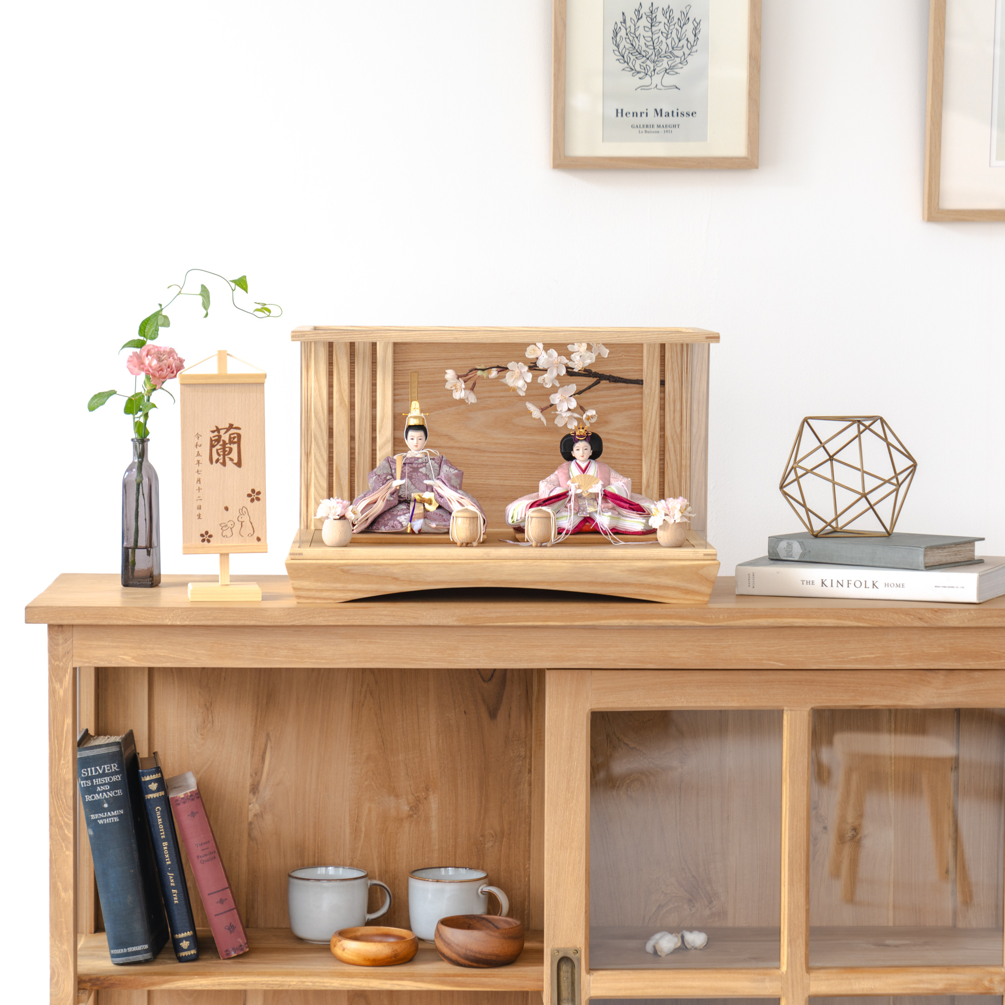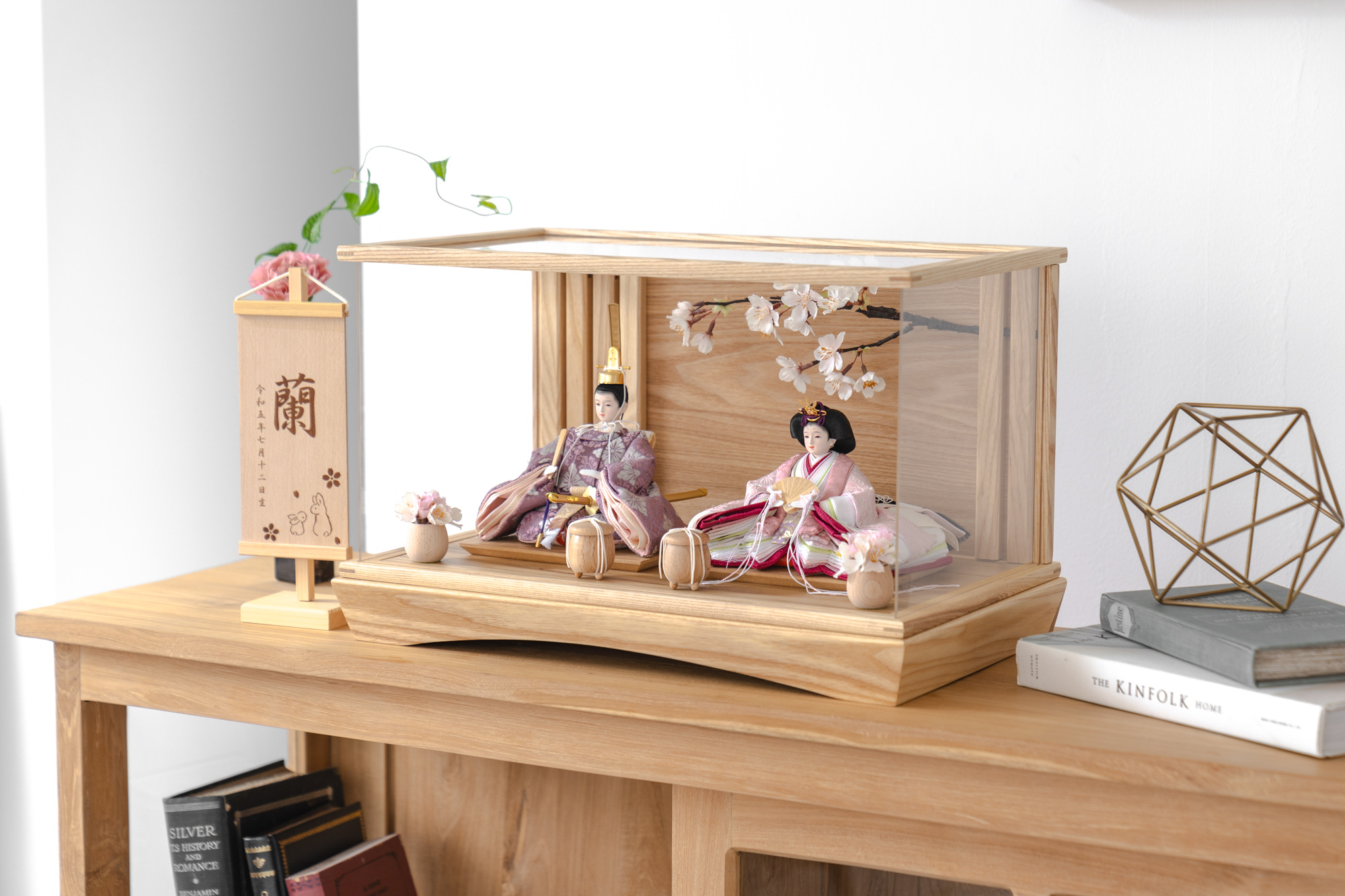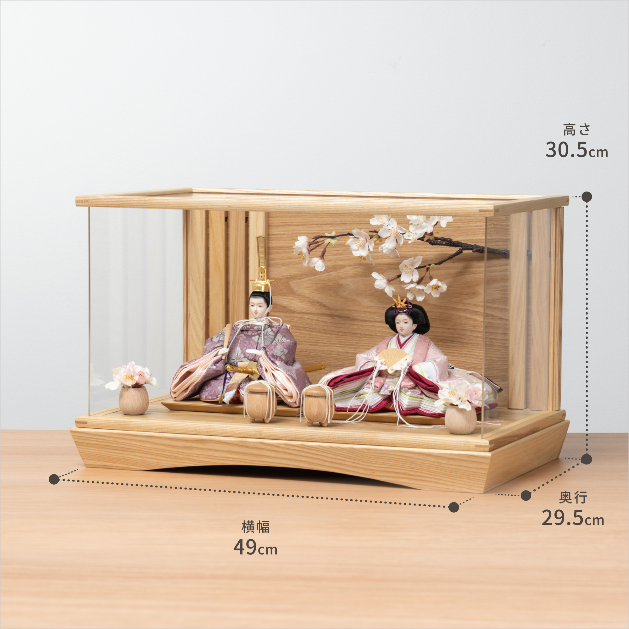 伝統工芸の技術、裏側や後ろ側、内部の見えない箇所や素材にまでこだわり抜いたひな人形。道具も木のぬくもりを感じて頂くために無垢材を使用しております。
