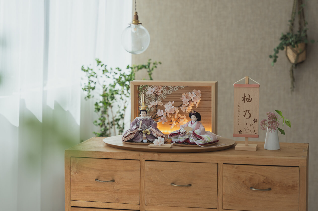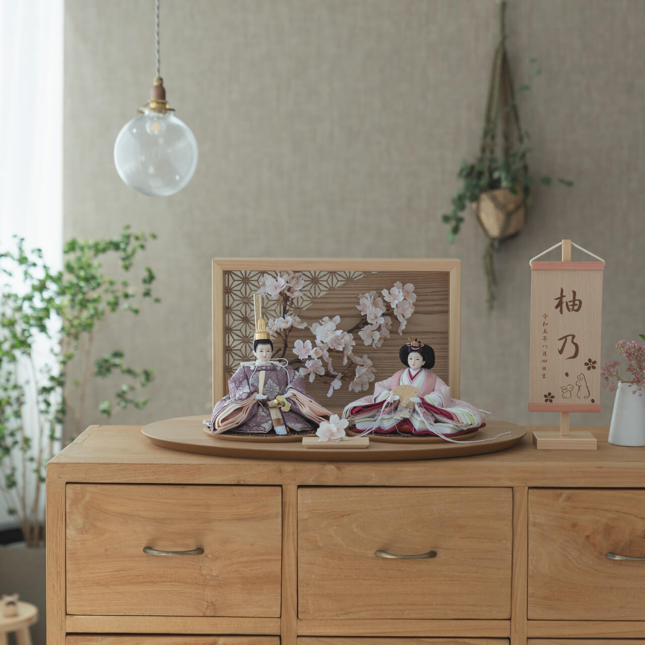 天然木の風合いを生かした木都の羽子板はひな人形と一緒に飾るのにぴったり。