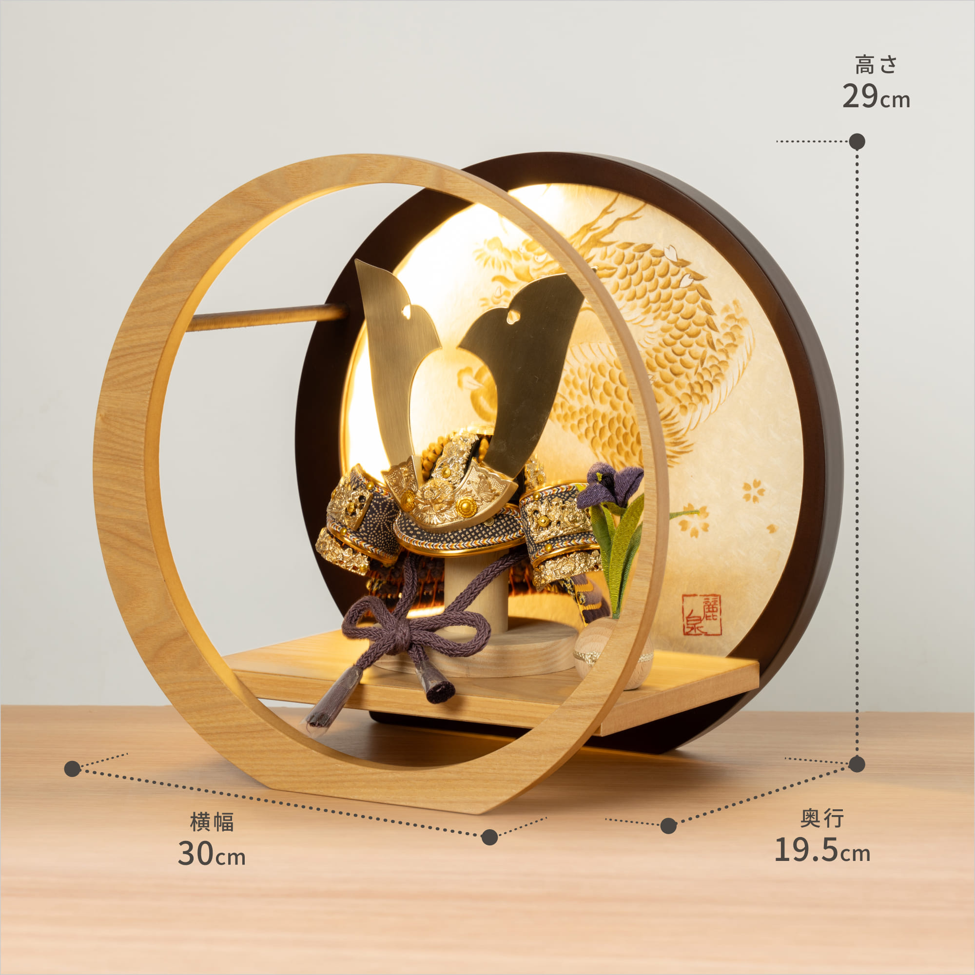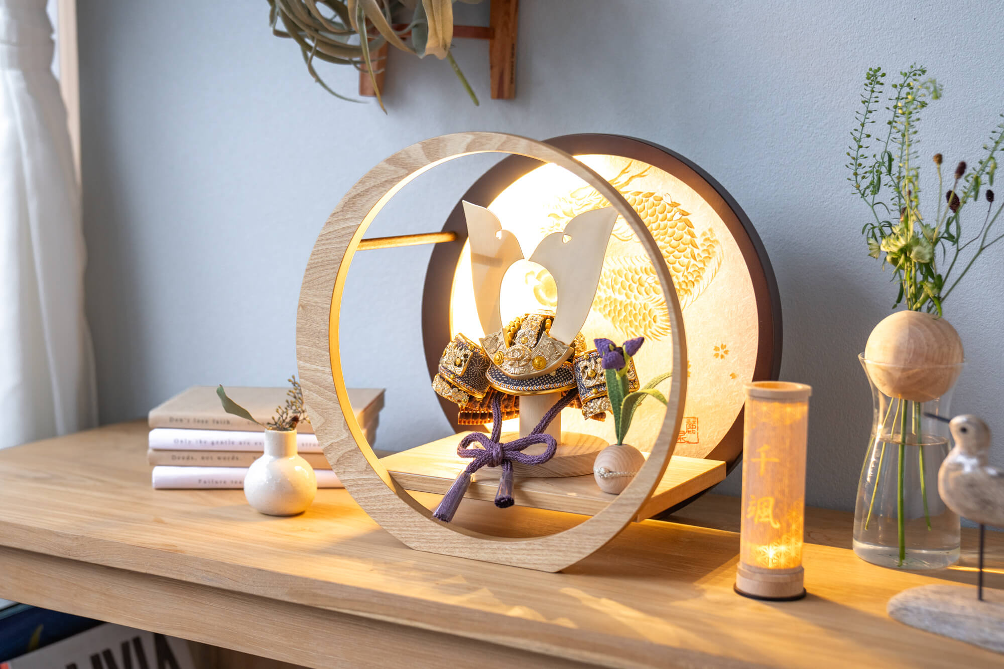 伝統的な製法で作られた兜に天然木の素材を活かした
