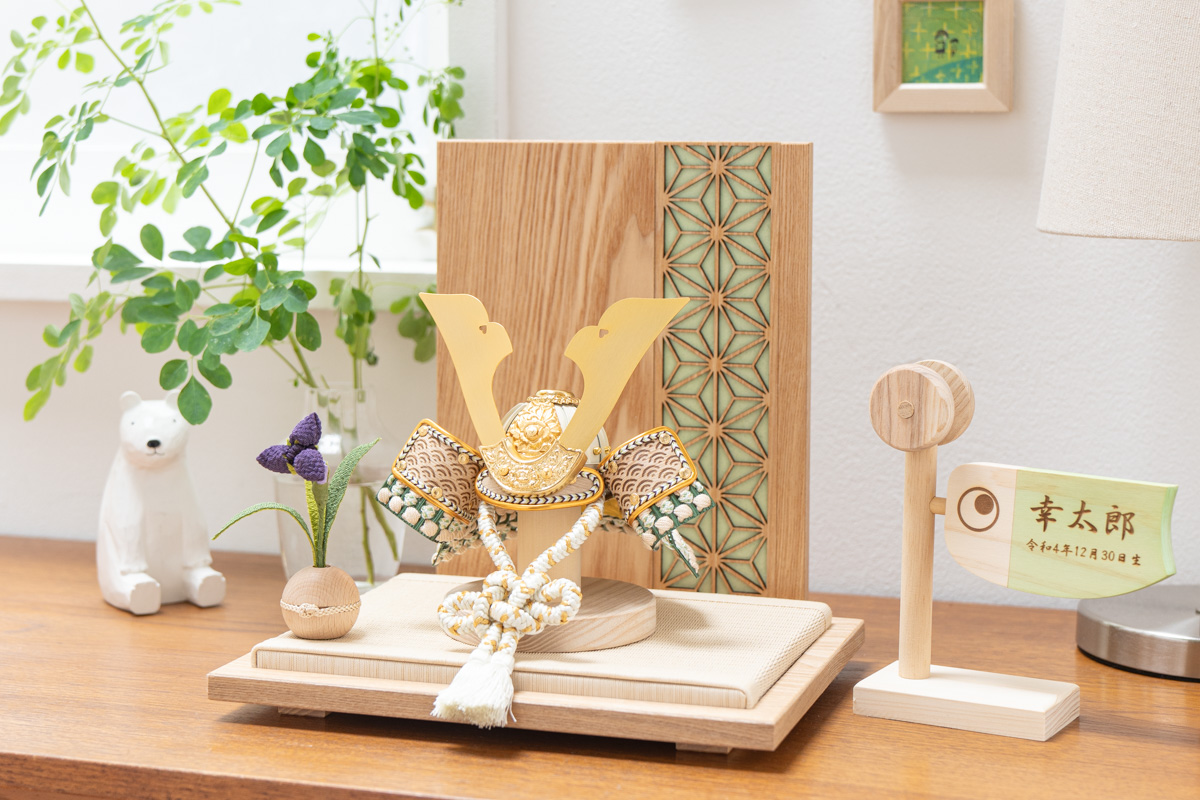 伝統的な製法で作られた兜に天然木の素材を活かしたシンプルなデザインの兜です。モダンでシンプルなデザインは、どんなお部屋の雰囲気にもピッタリ。
