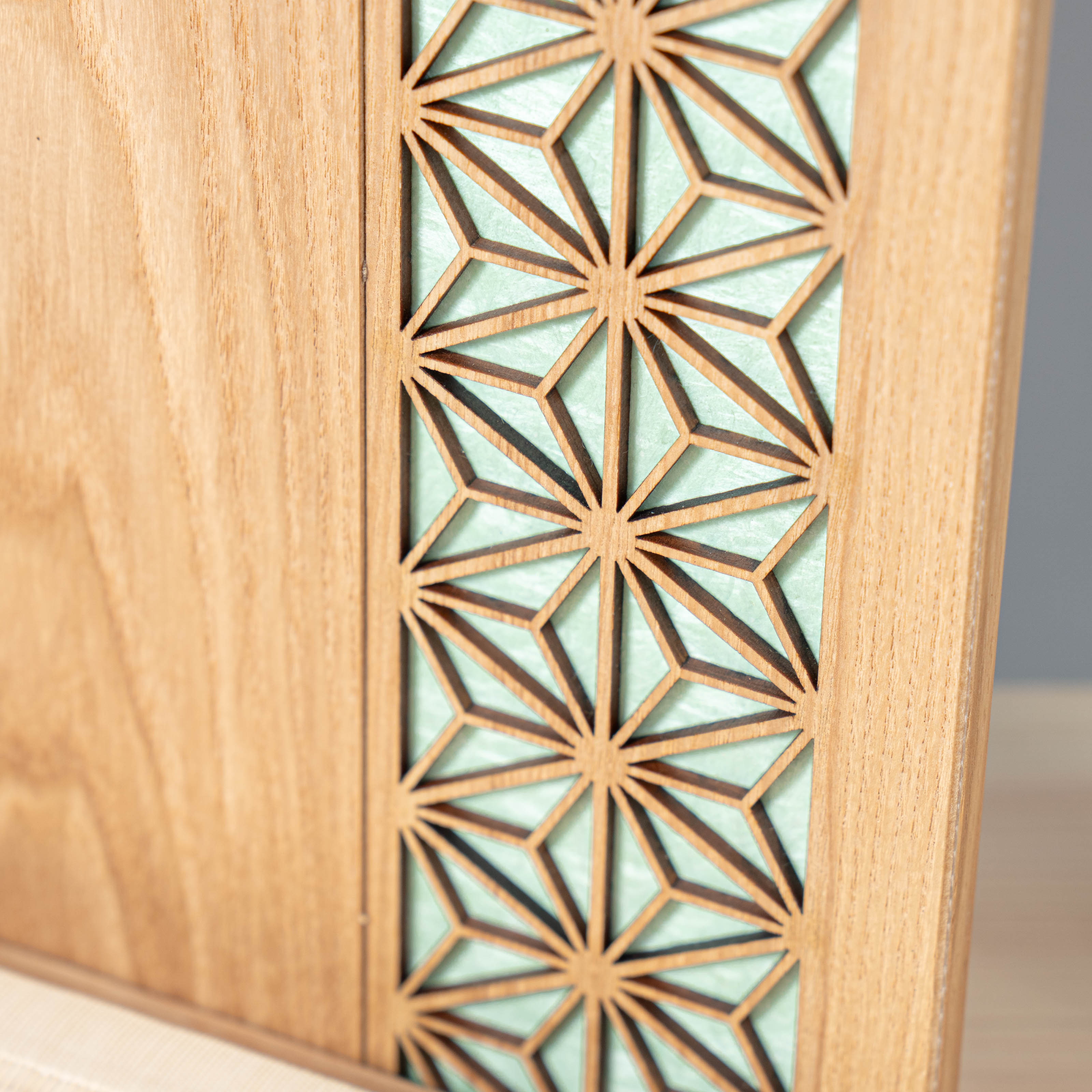 古来からの日本伝統の吉祥文様である麻の葉文様。麻の丈夫さ・成長の早さにあやかり、お子さまの健やかな成長への願いが込められています。