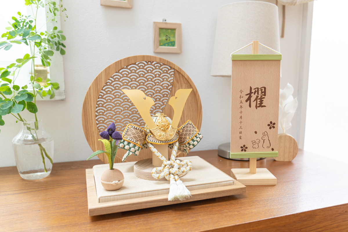 伝統的な製法で作られた兜に天然木の素材を活かしたシンプルなデザインの兜です。モダンでシンプルなデザインは、どんなお部屋の雰囲気にもピッタリ。