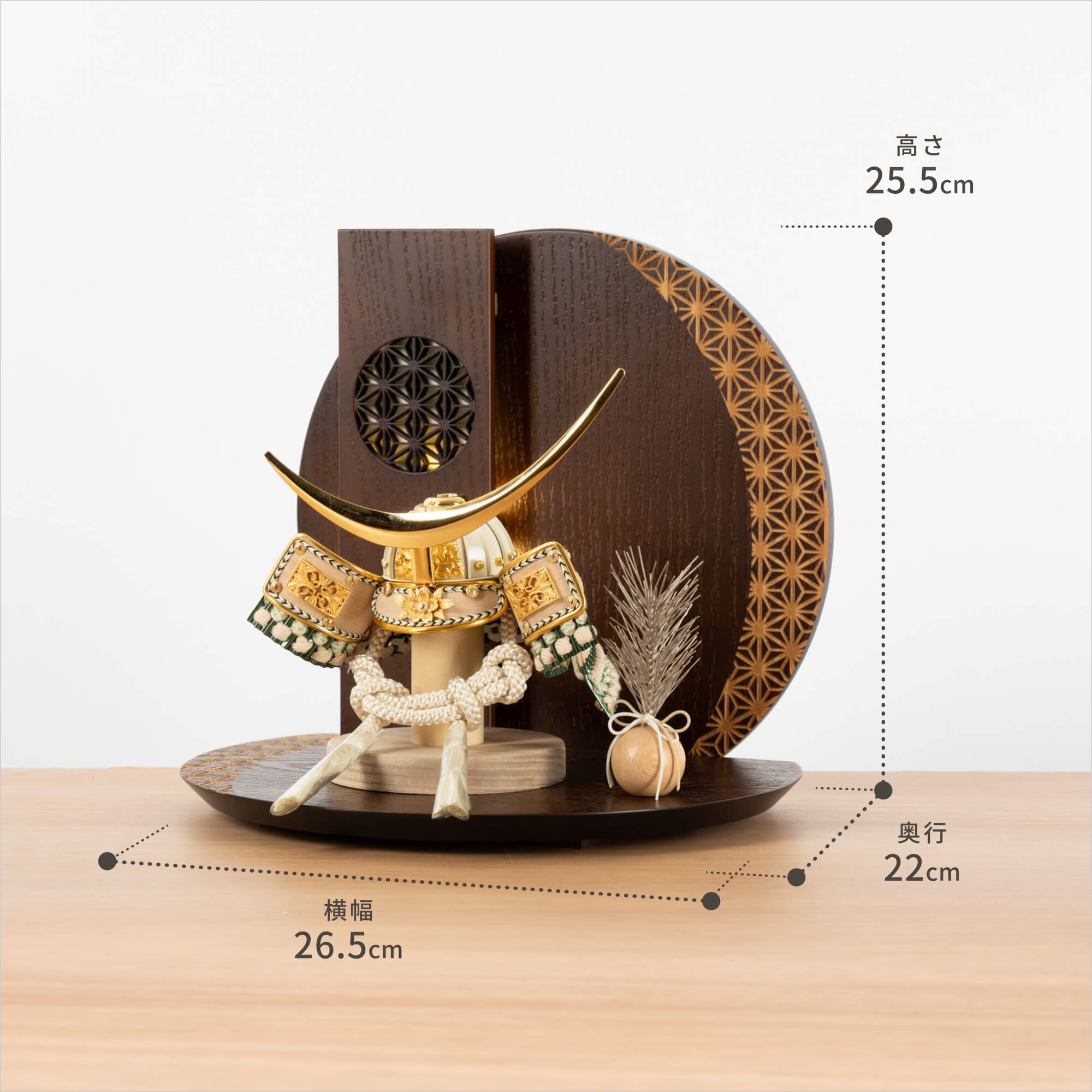 伝統的な製法で作られた兜に天然木の素材を活かしたシンプルなデザインの兜です。モダンでシンプルなデザインは、どんなお部屋の雰囲気にもピッタリ。