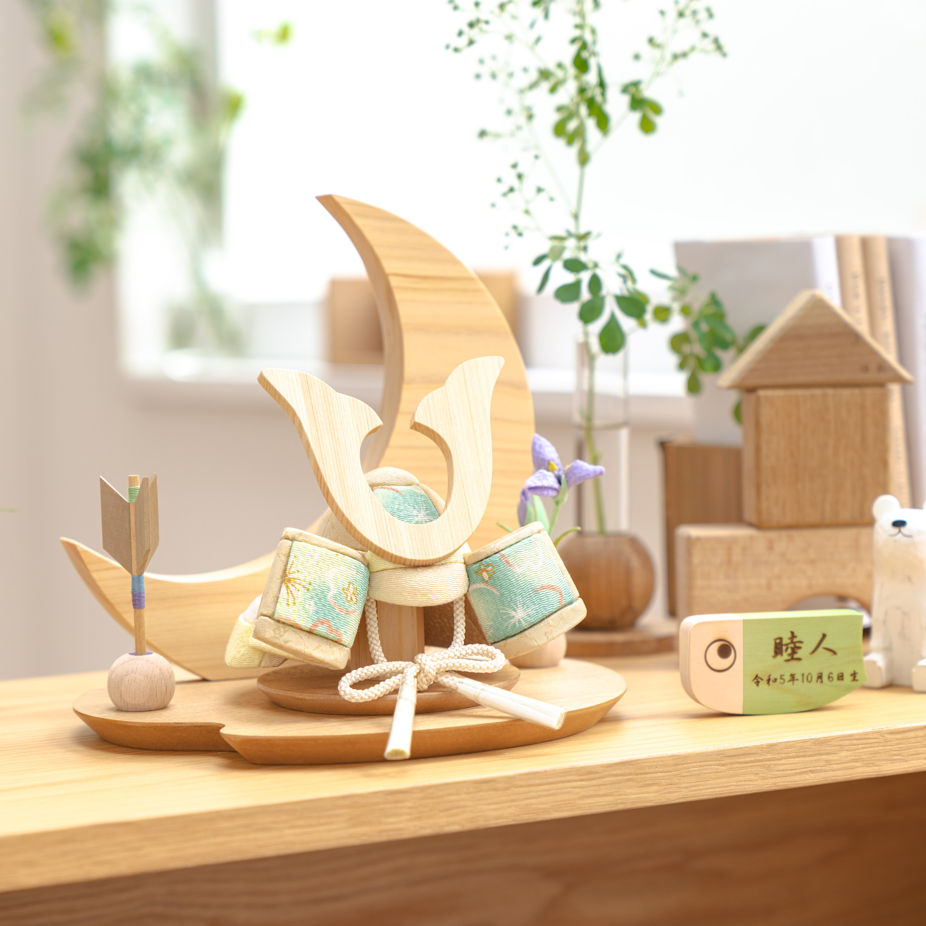 日本の天然木でつくった節句人形 ことの木目込かぶと