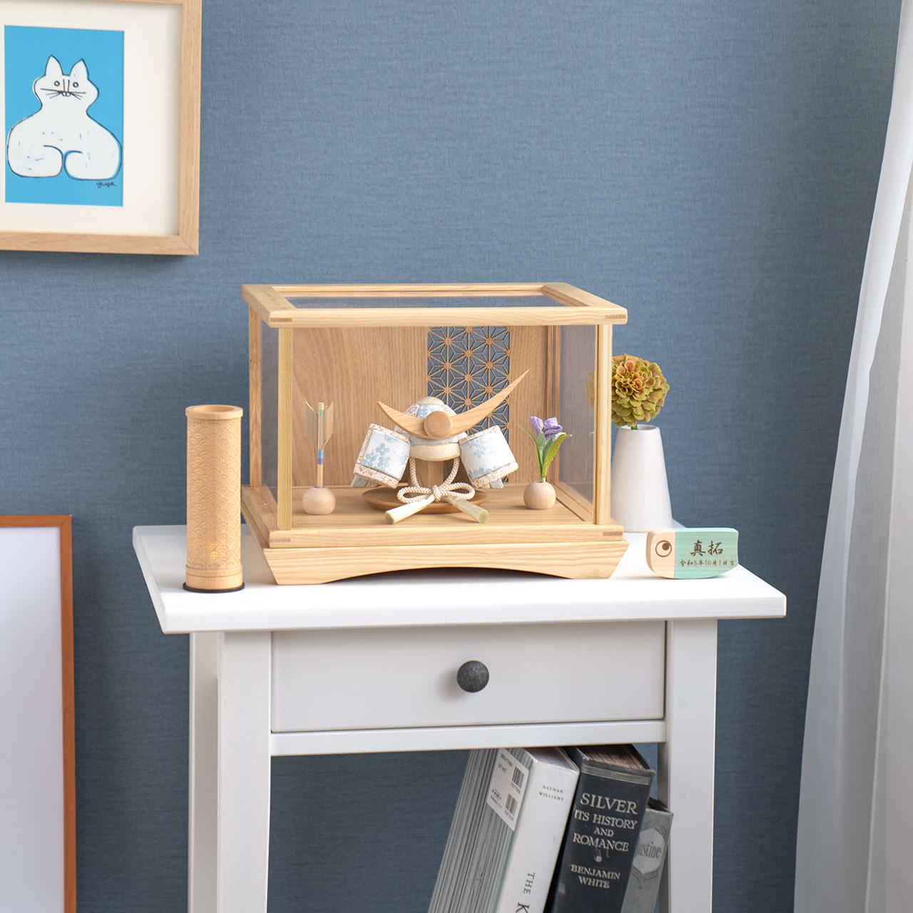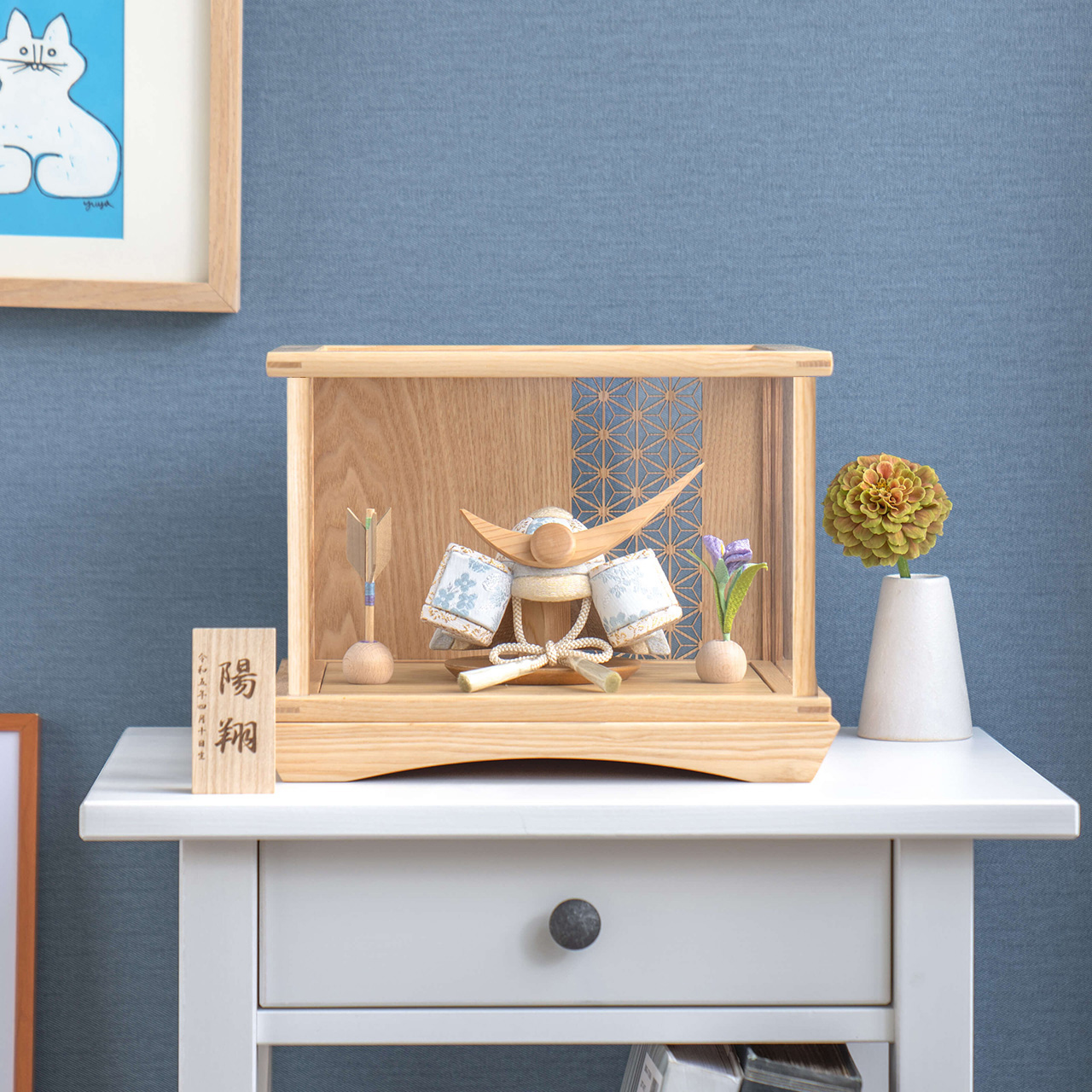 日本の天然木でつくった節句人形 ことの木目込かぶと