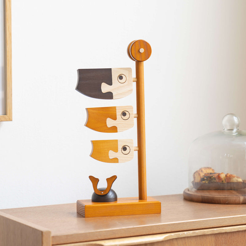 天然木の風合いを生かした木都の破魔弓は五月人形と一緒に飾るのにぴったり。