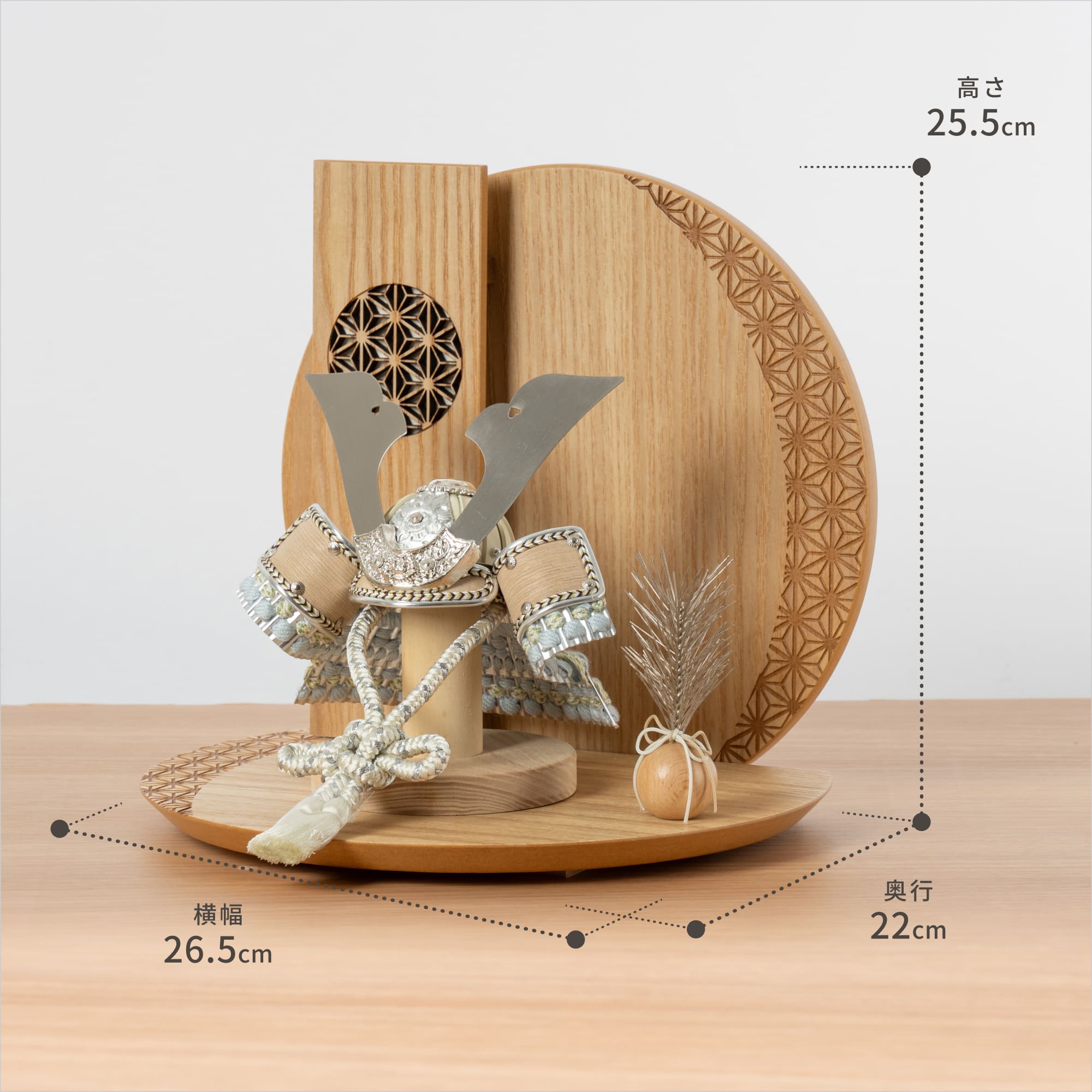 伝統的な製法で作られた兜に天然木の素材を活かしたシンプルなデザインの兜です。モダンでシンプルなデザインは、どんなお部屋の雰囲気にもピッタリ。