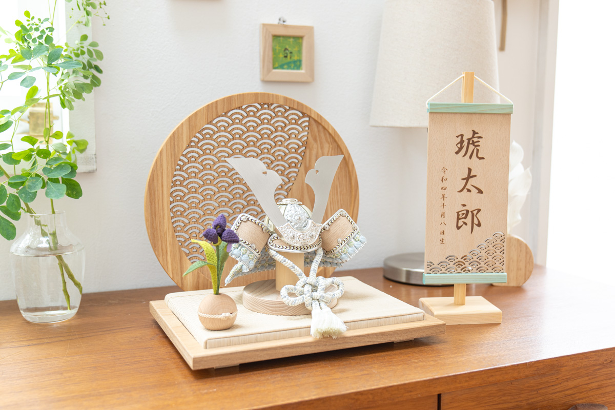 息子の初節句に購入しました。昔ながらのイカつい甲冑飾りを初節句に、と考えていましたが、長い目で見てずっと飾り続けられるオシャレなものがよいと、こちらを選ばせていただきました。イメージ通り、リビングに違和感なく馴染み、子供が成長してからもインテリアとして飾り続けていけると感じました。どんな飾りがいいか迷ってるうちに日が過ぎていき、ギリギリの注文でしたが迅速に発送していただけてありがたかったです。