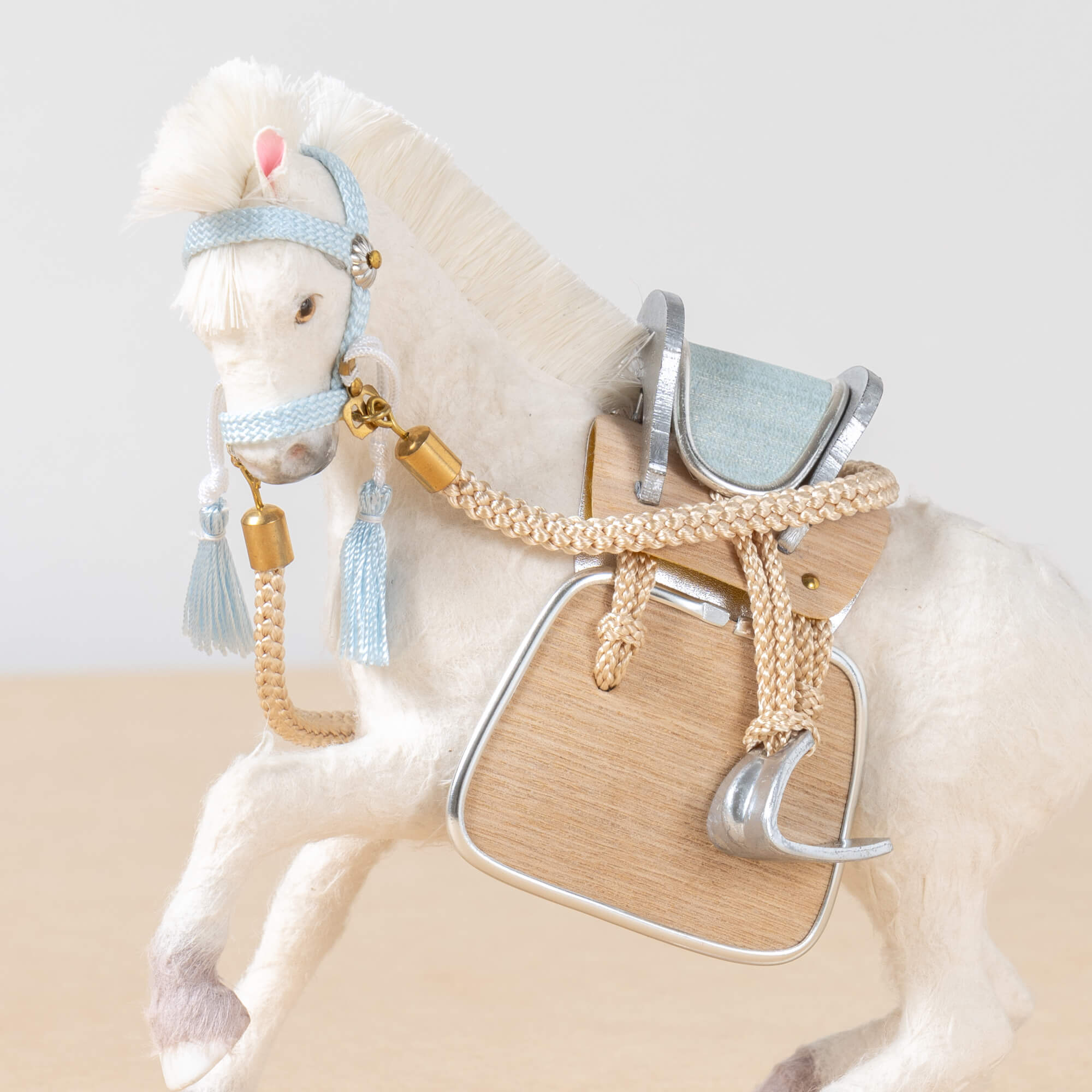 鞍や手綱やくつわ、あぶみなどの細部までこだわった、躍動感溢れる飾り馬です。