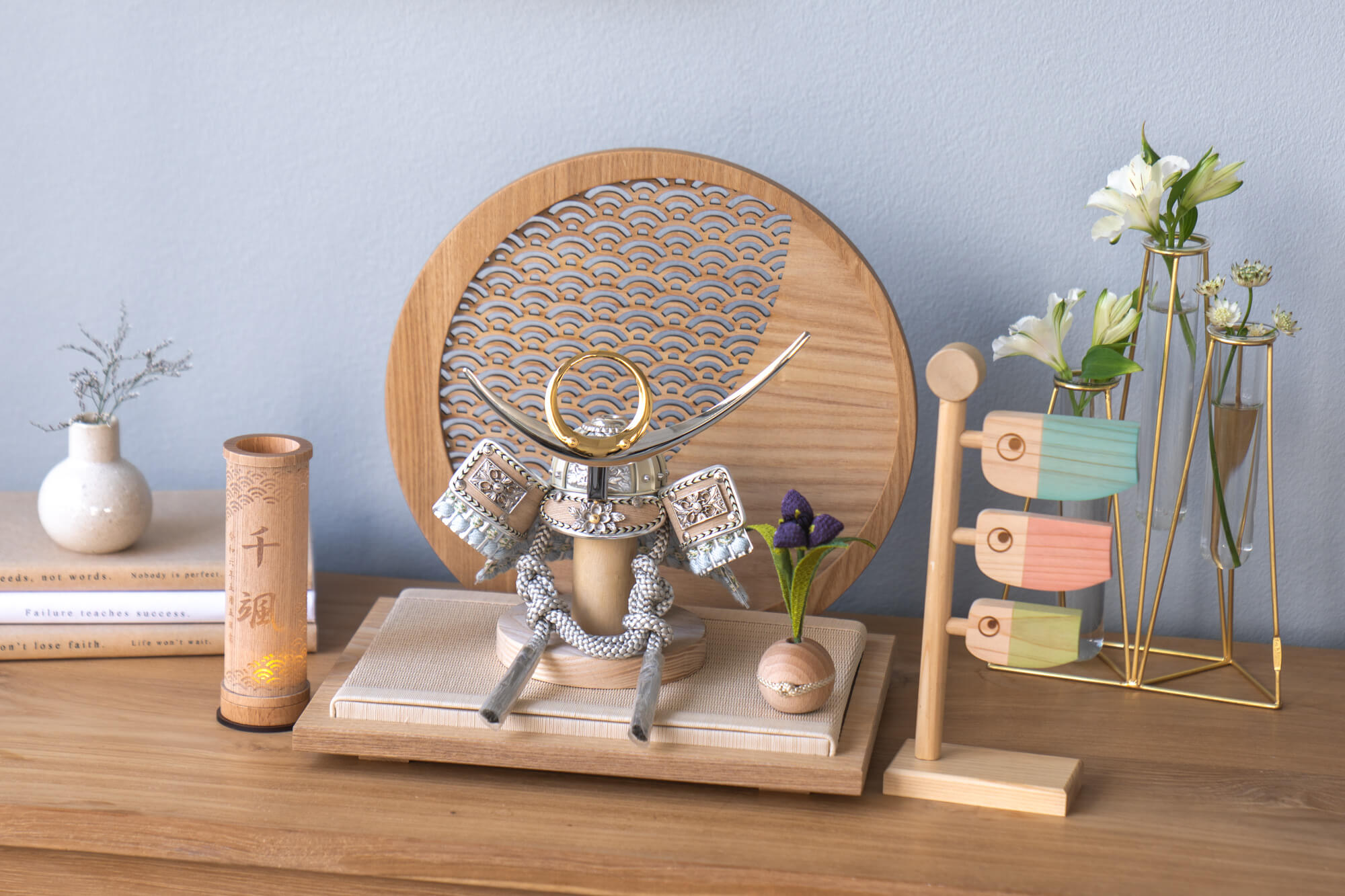 伝統的な製法で作られた兜に天然木の素材を活かしたシンプルなデザインの兜です。モダンでシンプルなデザインは、どんなお部屋の雰囲気にもピッタリ。