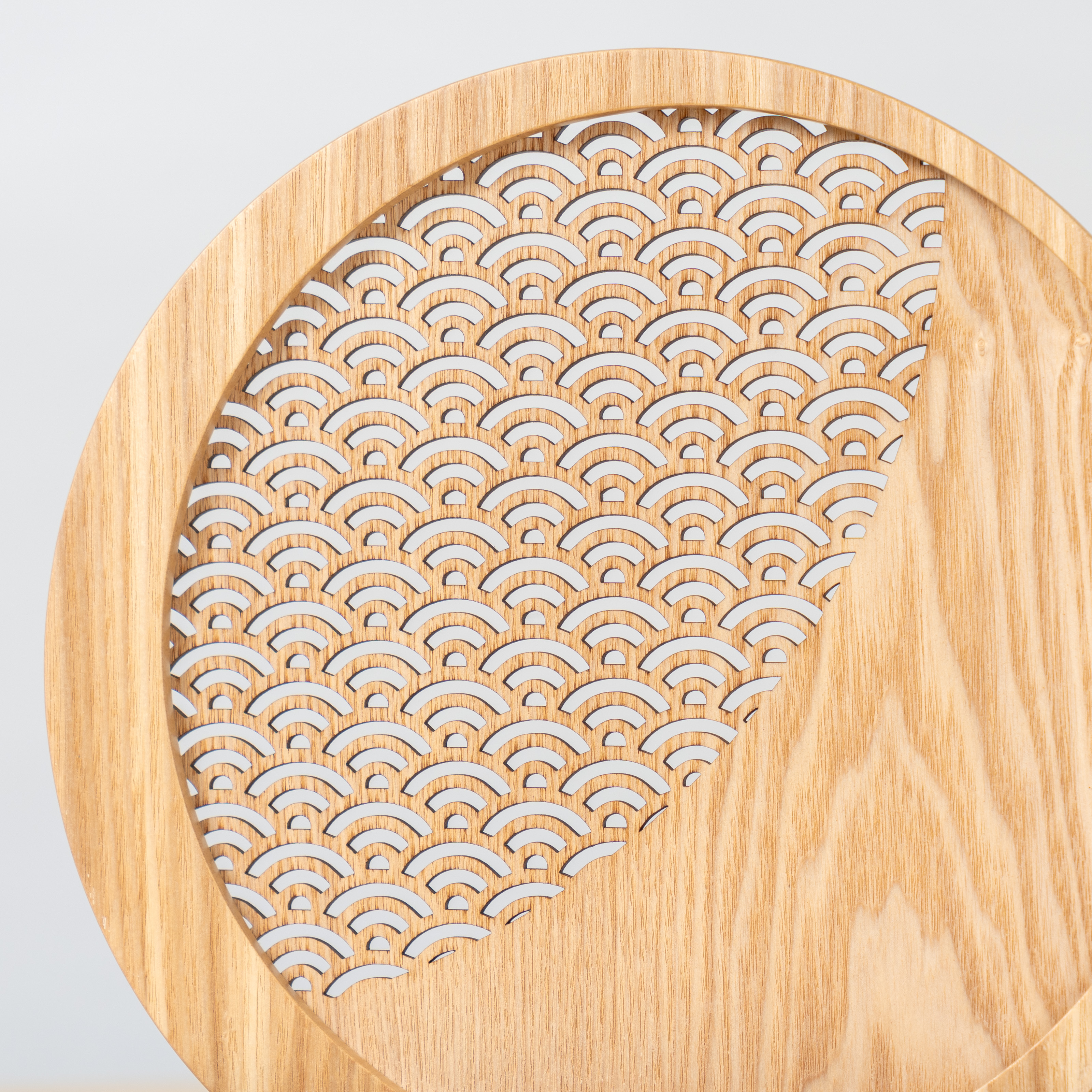 屏風の模様は青海波(せいかいは)と呼ばれています。穏やかな波がどこまでも続いている様子の模様。「未来永劫平穏に」という意味が込められた吉祥柄。穏やかな日々が続いていくよう願いが込められています。